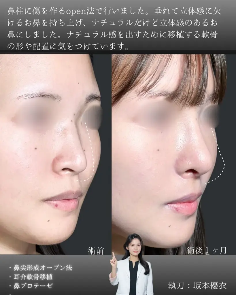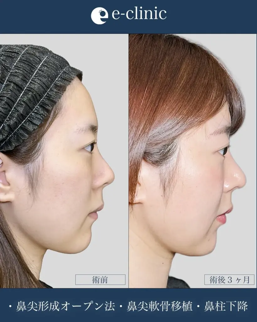 施術概要: 鼻柱(鼻の中央部)を下げることで、鼻先のバランスを整える手術。