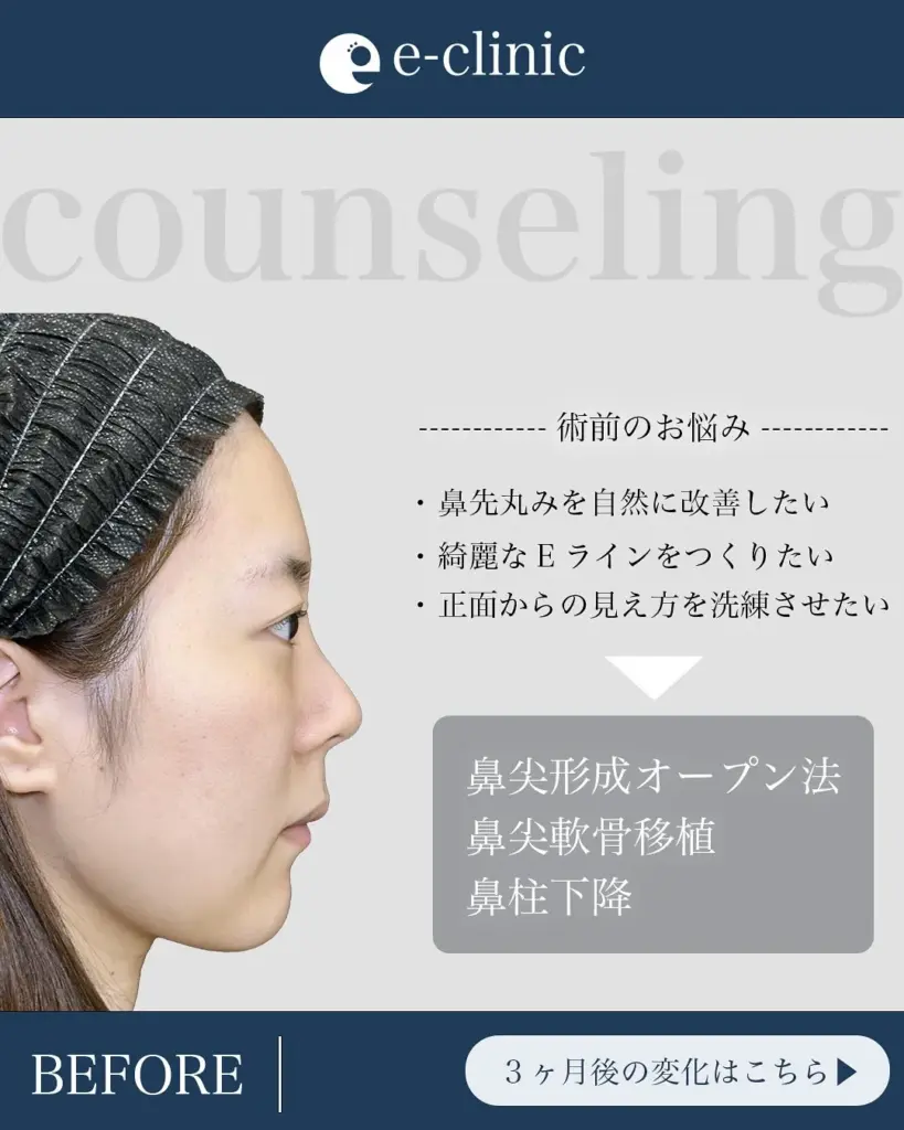鼻先の軟骨を立体的に整えることで、シャープで高精度な鼻先を形成する施術です