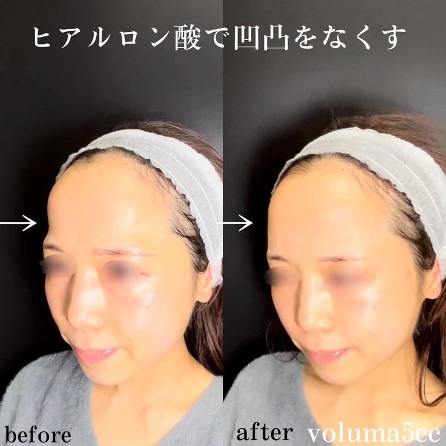 糸リフトと脂肪吸引によってフェイスラインを整えたあと、自然な立体感を保つためにボリュームが不足しがちな頬やこめかみ、あご下にヒアルロン酸を注入して凹凸を綺麗に整えます。